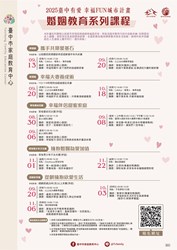 一、課程內容:針對將婚者、新婚者、育有青少年子女及結婚多年者等各階段市民,開設一系列婚姻課程與體驗活動,刻正受理報名中。